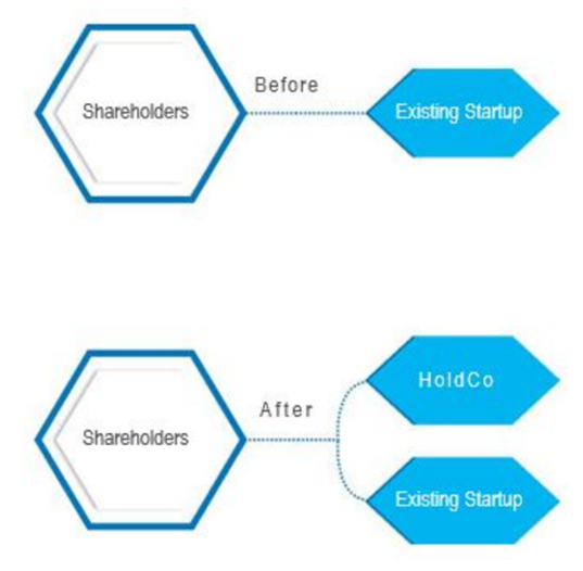 • The existing startup shareholders exchange a like interest in the existing startup for a corresponding interest in the holdco (i.e., share for share, or option for option)